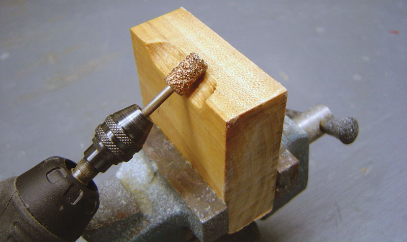 The louver shape is formed in a hardwood block using a Dremel Moto-Tool and a carbide bit.
