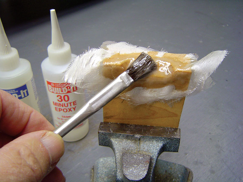 Thirty-minute epoxy is brushed onto the mold, and three layers of 2-ounce fiberglass cloth is added. Apply epoxy between each layer so that all the layers are fully saturated.