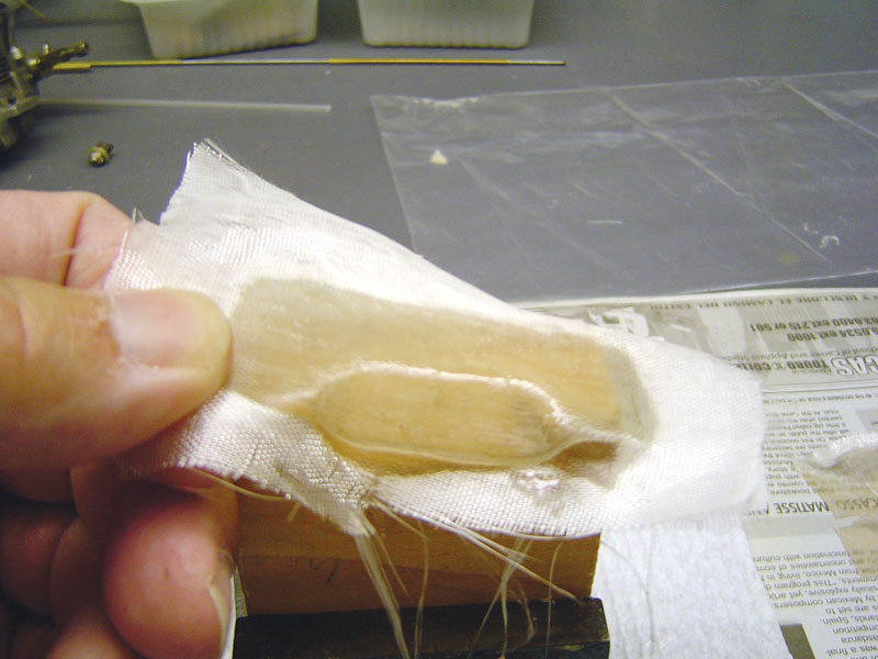 I made the louvers using 30-minute epoxy glue and a 2-ounce fiberglass cloth. I made a forming mold so that all the louvers would look the same. Using a Dremel Moto-Tool with a Robart carbide grinding bit, I cut the shape of the louver into the edge of a hardwood block.