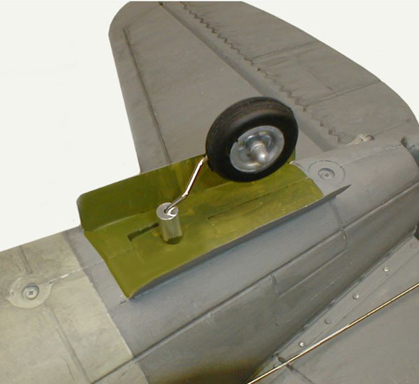 I decided that many of those neat little “shutters” and openings on the full-scale Jug could be created easily enough. After referring to a number of pictures and drawings, I used printer’s litho plate, which is a very thin metal, to make the parts. It is a great material for modeling and, when you can find it, it’s usually free because it’s a disposable commodity that is used only once and discarded. Check with a local commercial printing shop. They’ll probably give you a modeling lifetime’s worth! I cut the parts with multiple passes with a hobby knife – a sharp scissor will work but will give a slightly curled edge to the metal which should be straightened. I then cut openings into the foam fuselage to accept the litho parts that included intercooler and oil cooler shutter, waste gate panels, and tailwheel doors that were fit and epoxied into place.