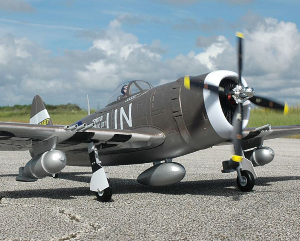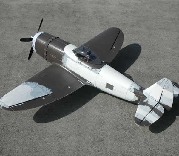 This Airfield P-47 (Nitroplanes.com) is one of the latest foam ARF warbirds and it reflects two big differences from “first generation” foam models. It’s larger, by a good bit, than others and it’s molded of EPO (Expanded Poly Olefin) foam. Nearly all of the foam ARFs use this material under various names and it is a big leap forward, especially in the “finishing” and appearance department. Almost gone is the EPS (Expanded Poly Styrene) model that looks like it’s covered in alligator skin; it has been replaced by the smooth, close cell foam surface that offers a number of refinishing opportunities from simple repaint to the application of lightweight fiberglass cloth with epoxy-based resin.