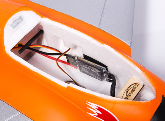 Using the recommended 2200mAh 30-65C 3S lipo and supplied 6×4 prop, you can expect flight times well beyond 6 minutes and with excellent performance throughout. But if you want a bit more punch then a 1300~2200mAh 4S 30C+ lipo can be used with the standard J8M Shusui setup.