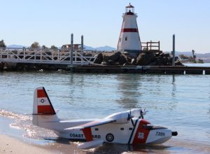 (Above) Monty Welch’s Park Scale Albatros in Coast Guard colors. The model is 96” span and is only 10.5 lbs! Electric powered and was built by his wife Lina Welch, truly a family project.