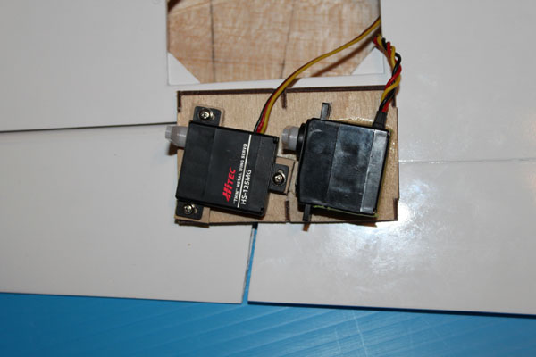 (Above) Servos and Ramp epoxied into place so the arms line up with the control horns.